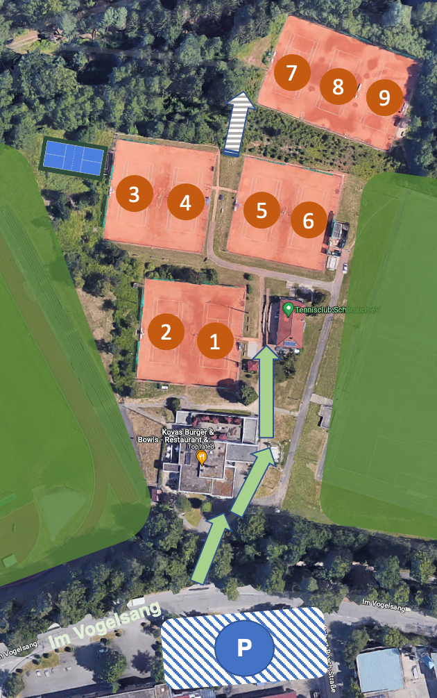 Tennisclub Schönaich – Parkmöglichkeiten, Zugang zur Tennisanlage, Plätze und Klubhaus